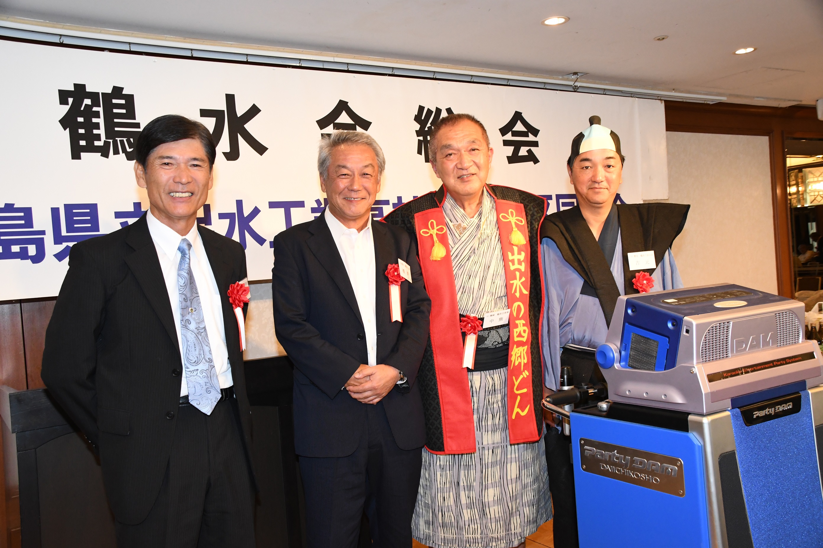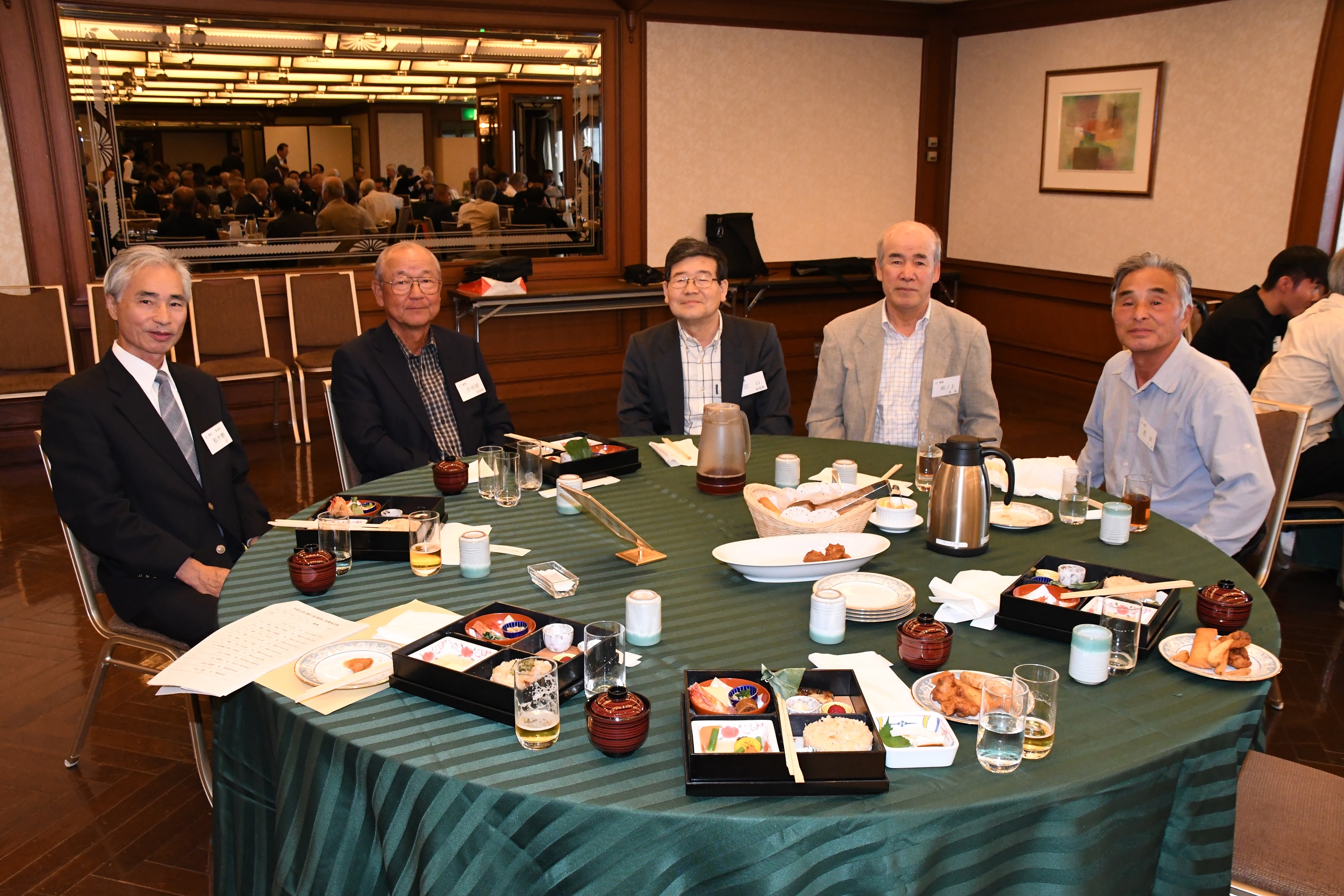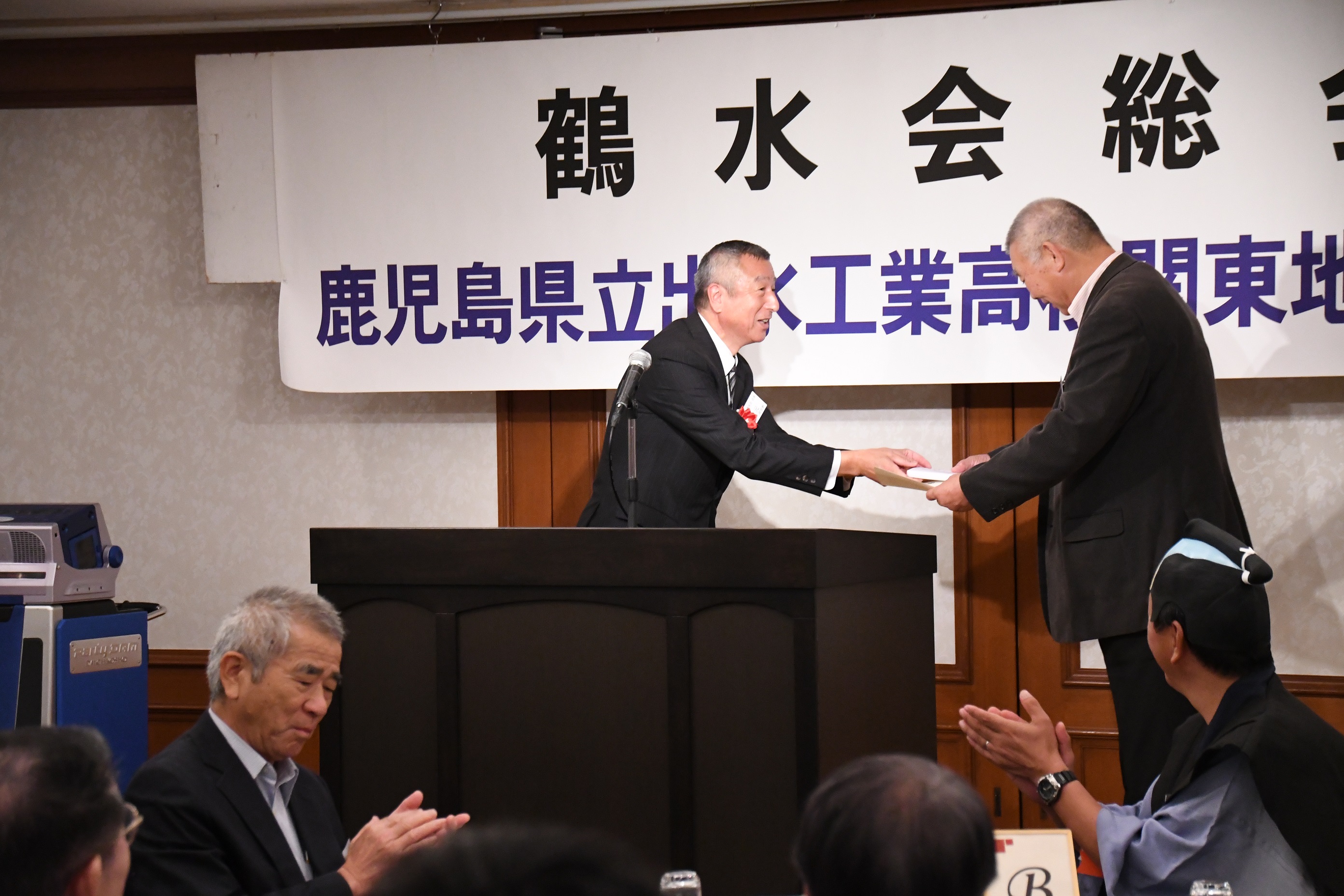 2018年鹿児島県立出水工業高校関東地区同窓会(第67回) 東京のチベット(岐阜県:中野先輩命名)から毎年総会・花見等参加されている茶縁先輩の表彰です 生涯でこれで5回目?の賞状授与と仰っていましたが・・・・ 今回、昨年の要望により会費の金額を減額する代わりに食事をバイキング方式から弁当への変更を行いました。これ以外に各テーブルにオードブルがありました。 写真を撮る側からしたら無駄に室内が狭くならず動きやすかったのが一番の感想ですが他の方々はどうだったか気になるところです。 新卒者は余った弁当を食べたりとやはり少なかったのでしょう。(個人的にはちょうど良かったけど)